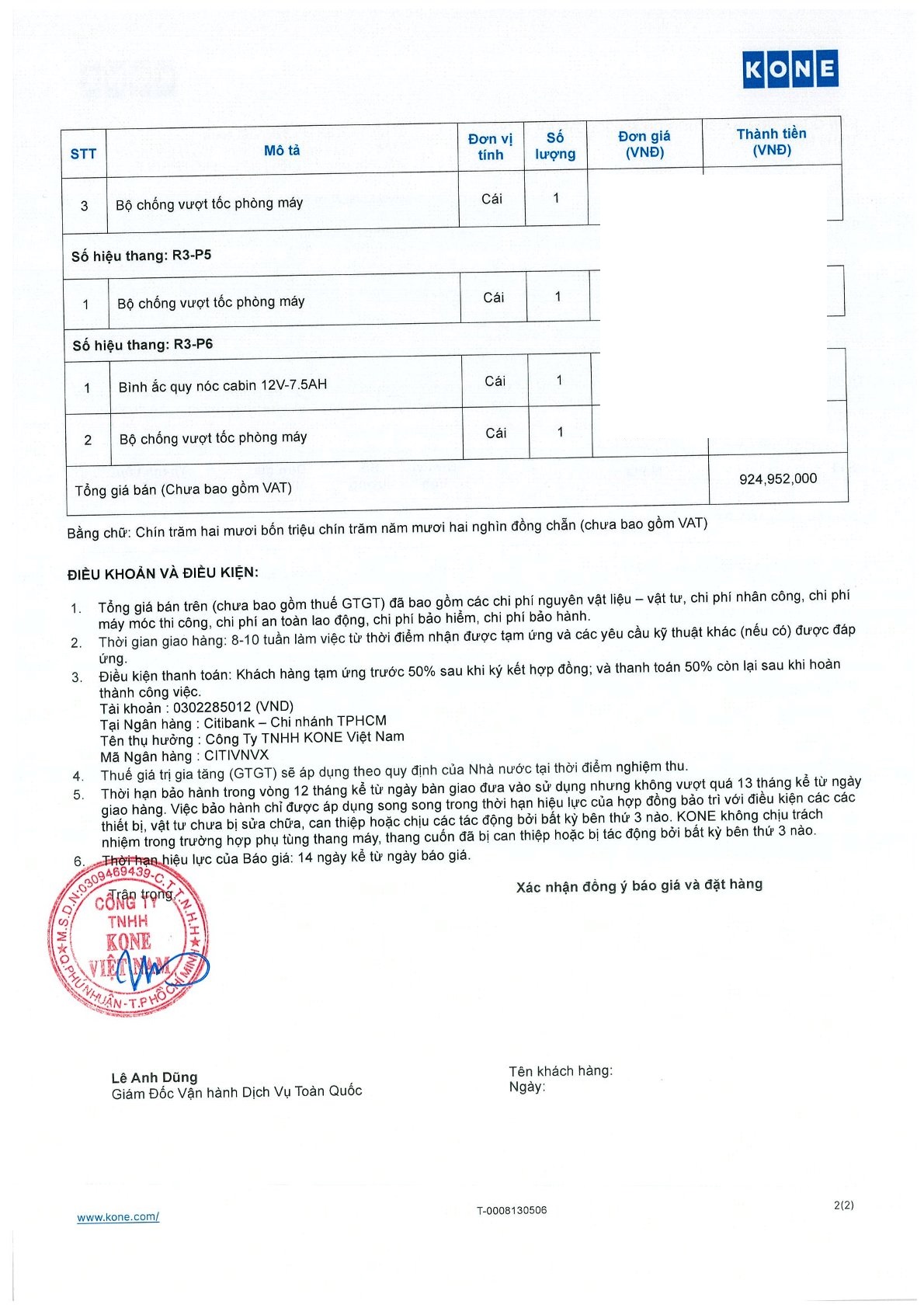 BÁO GIÁ THAY THẾ LINH KIỆN THANG MÁY CHÍNH HÃNG KONE GIAI ĐOẠN 2 – ĐẦU NĂM 2027