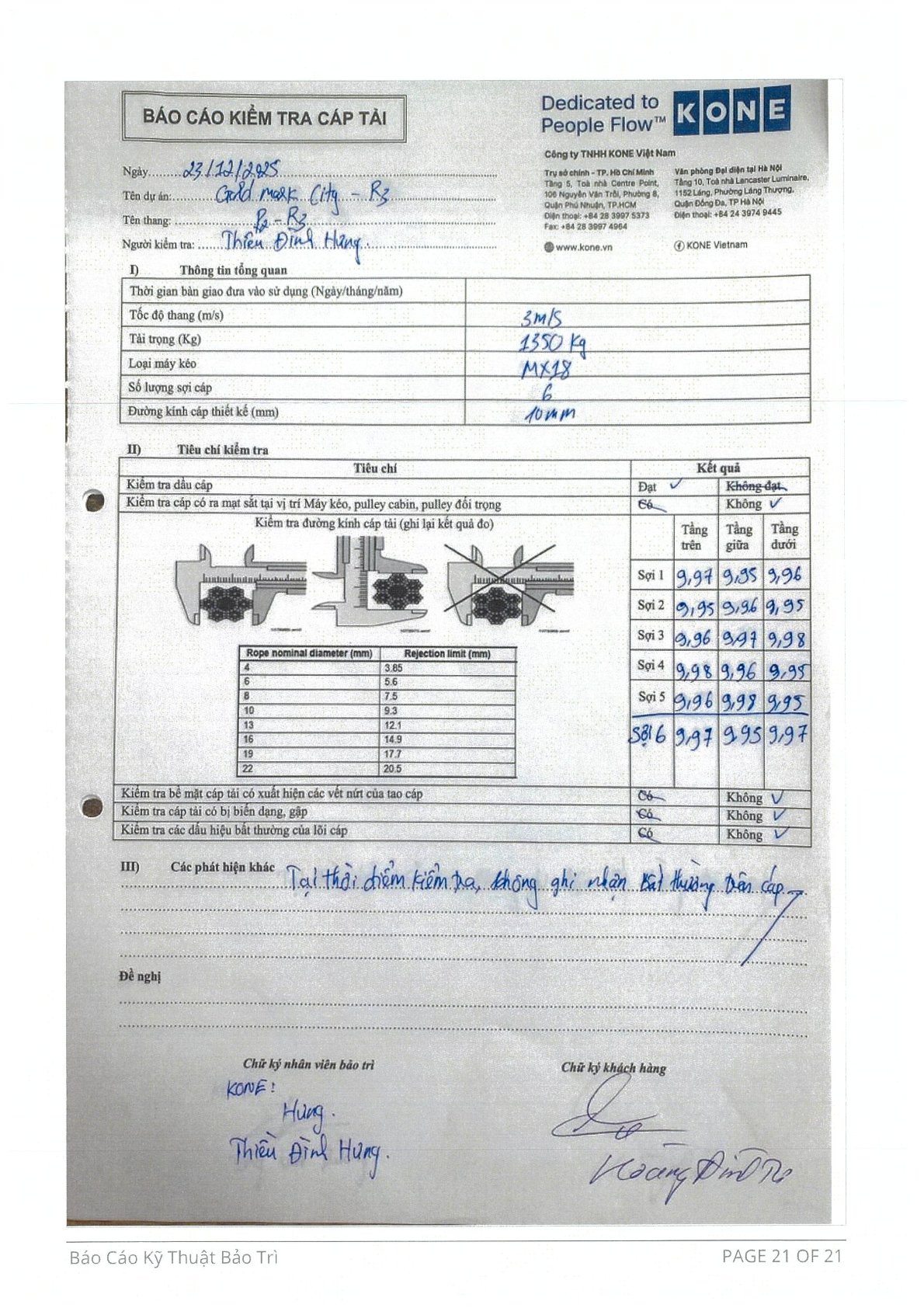 KẾT QUẢ THẨM ĐỊNH THANG MÁY P2