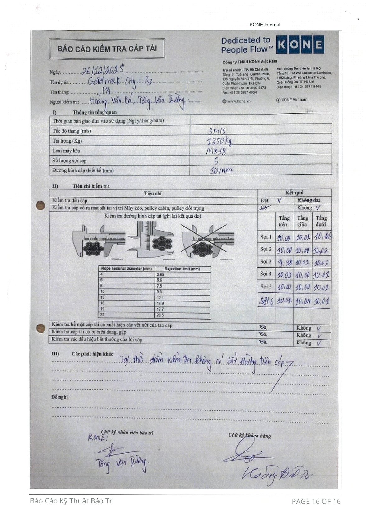 KẾT QUẢ THẨM ĐỊNH THANG MÁY P4