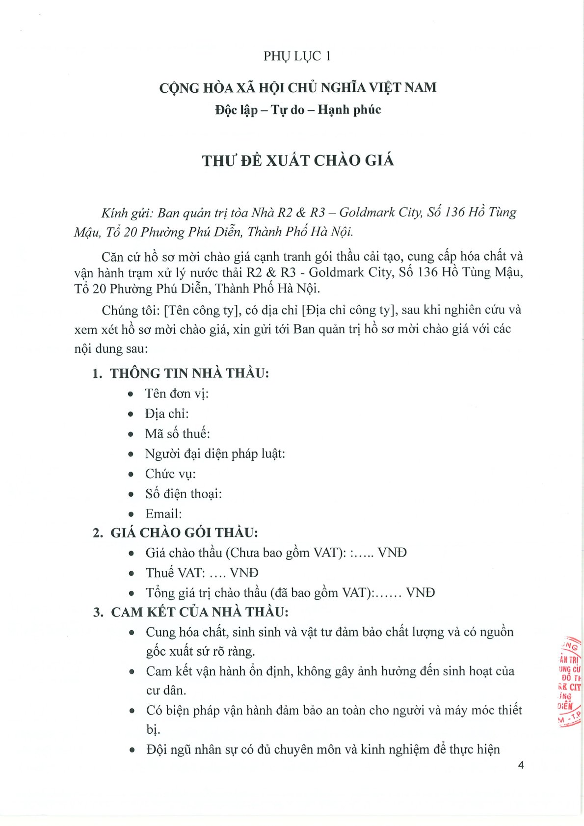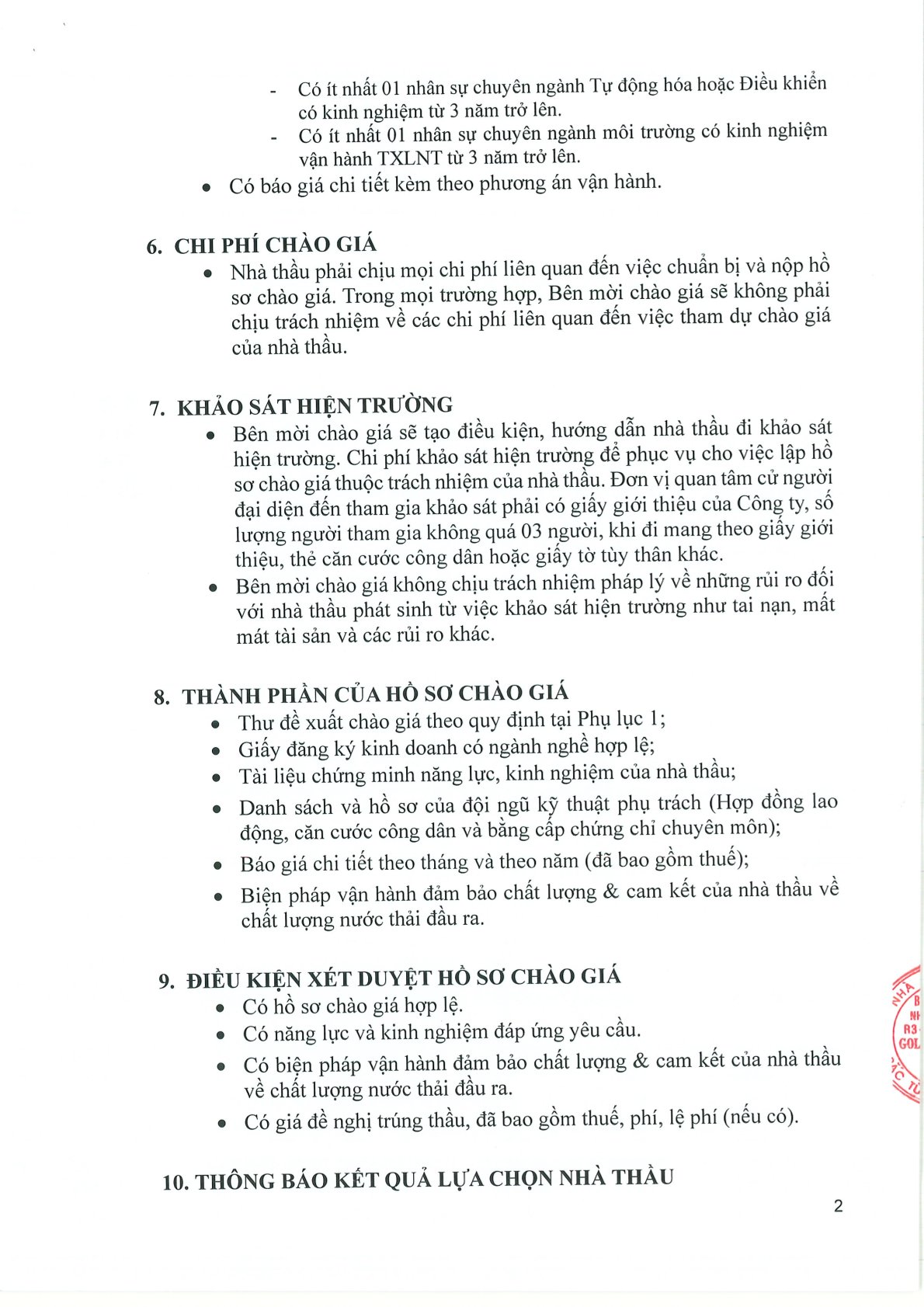 THÔNG BÁO MỜI CHÀO GIÁ CẠNH TRANH GÓI THẦU CẢI TẠO, CUNG CẤP HÓA CHẤT VÀ VẬN HÀNH TRẠM XỬ LÝ NƯỚC THẢI R2 & R3