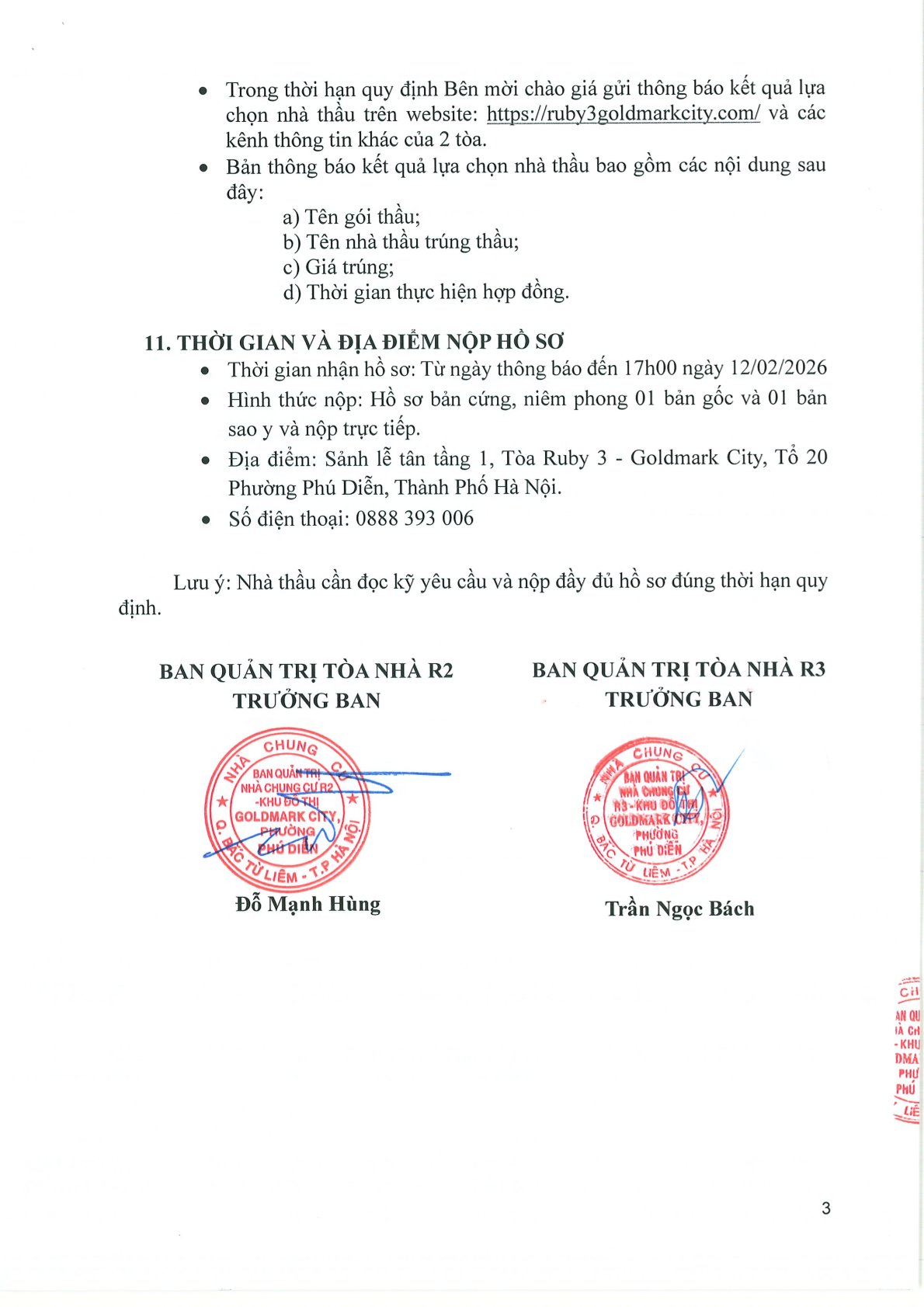 QUYẾT ĐỊNH SỐ 01/2026/QĐ-BQTR3 QUYẾT ĐỊNH VỀ VIỆC BAN HÀNH BỘ QUY CHẾ CỦA NHÀ CHUNG CƯ R3 – KĐT GOLDMARK CITY NGÀY 12/01/2026