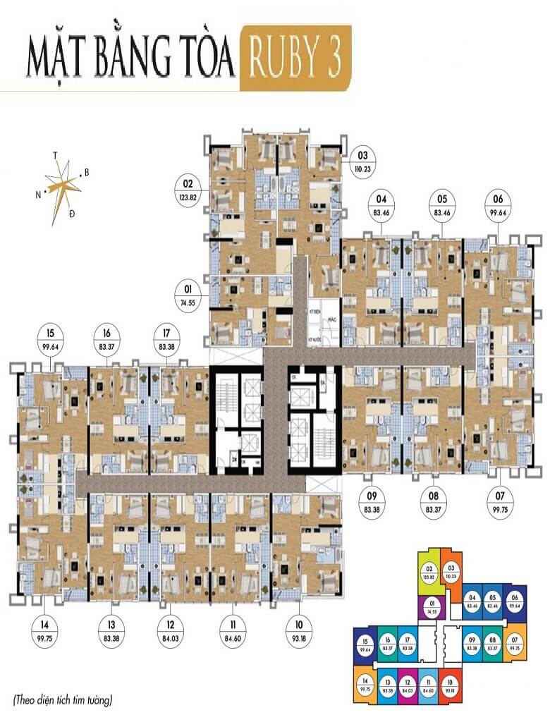 Mặt bằng tầng điển hình tòa Ruby 3 chung cư Goldmark City
