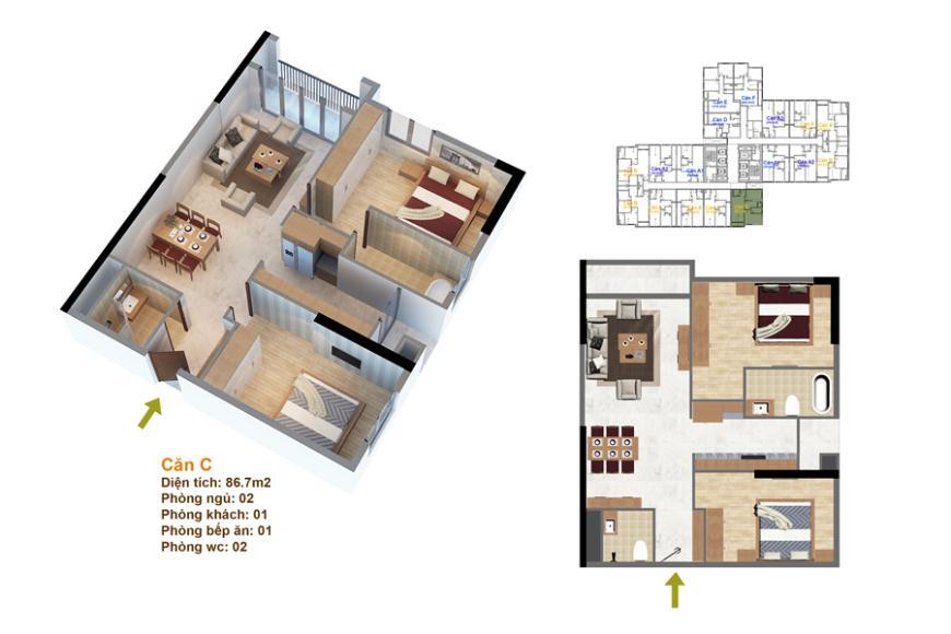 Thiết kế mặt bằng căn hộ tòa Ruby 3 – Goldmark City