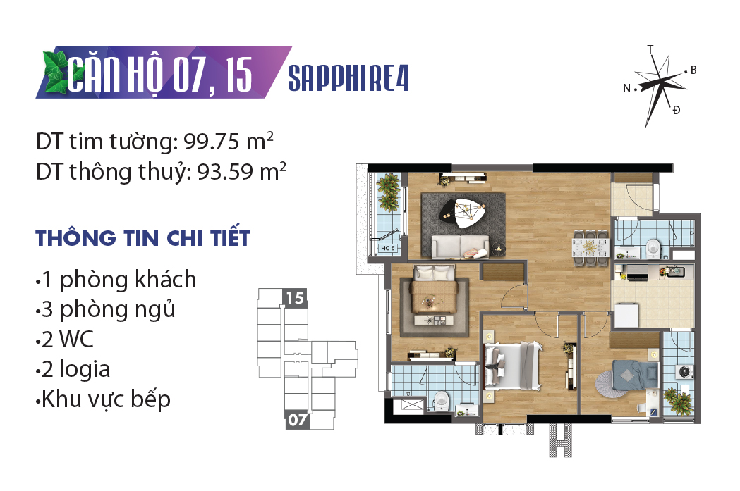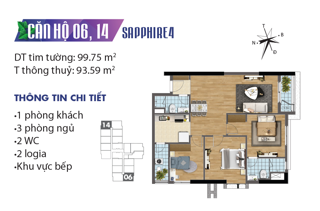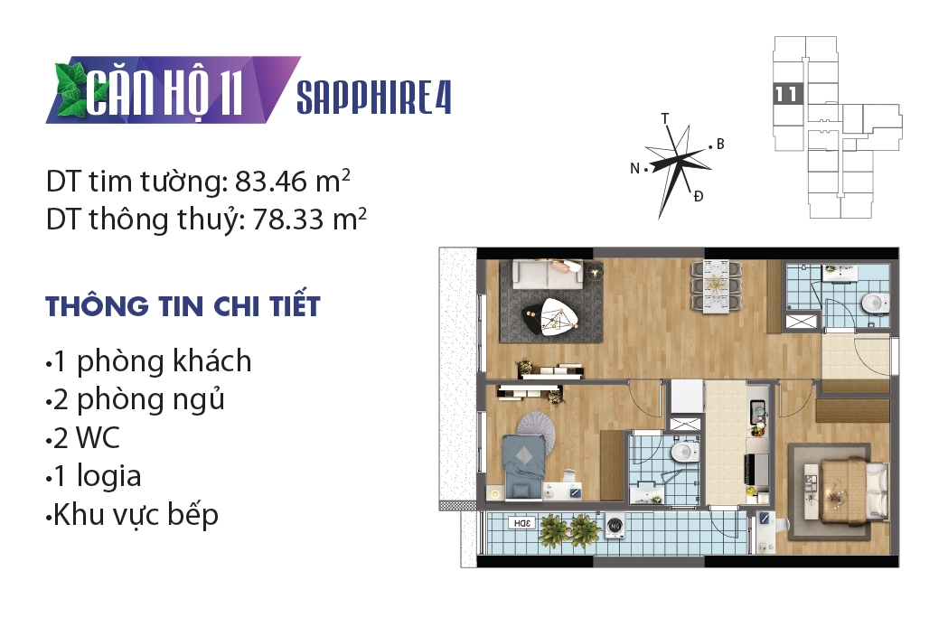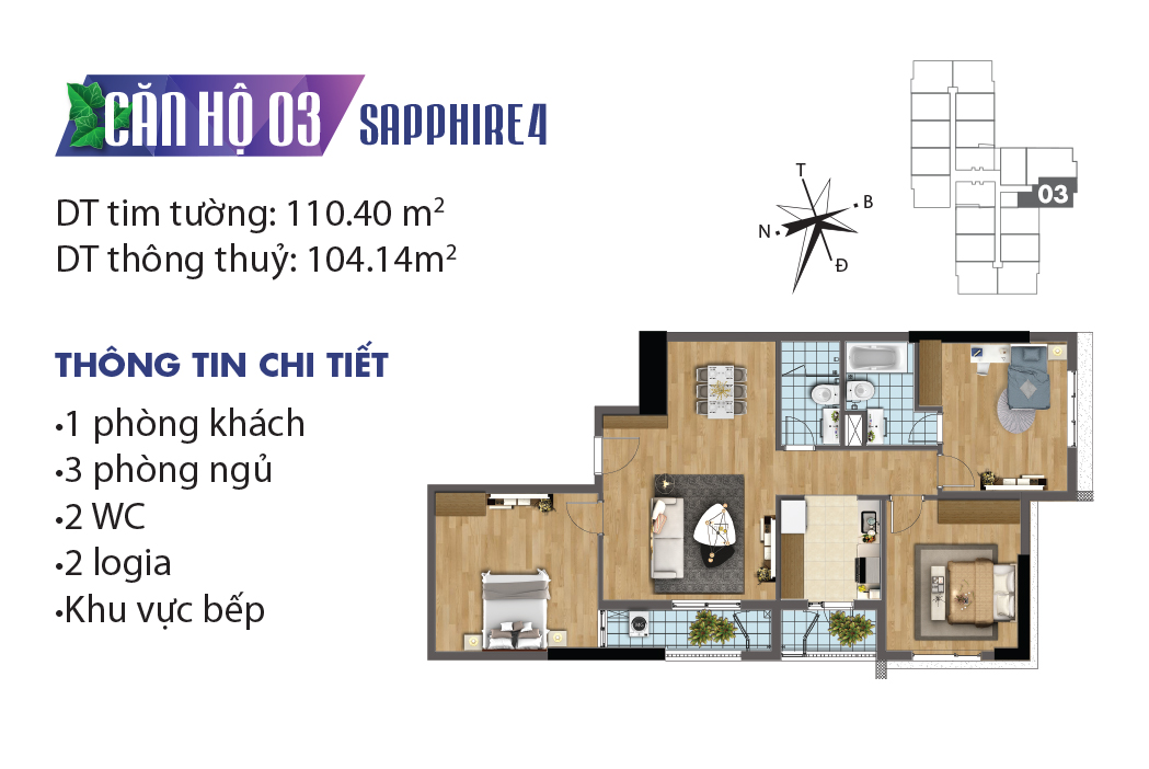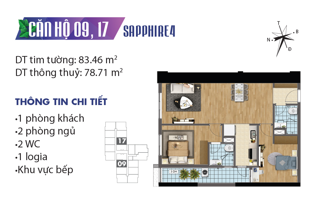 Thiết kế mặt bằng căn hộ tòa Sapphire 4 – Goldmark City