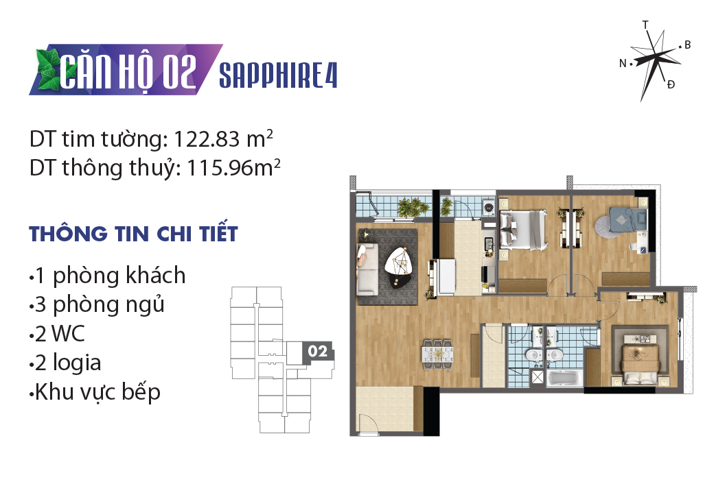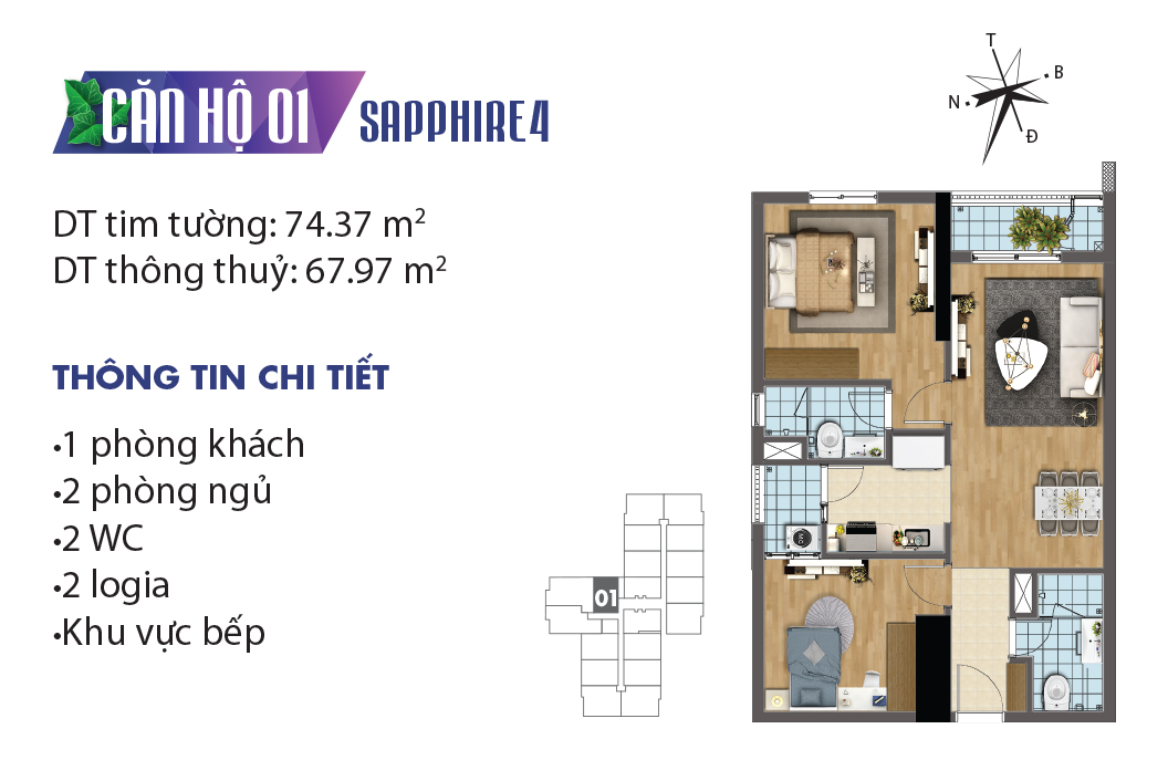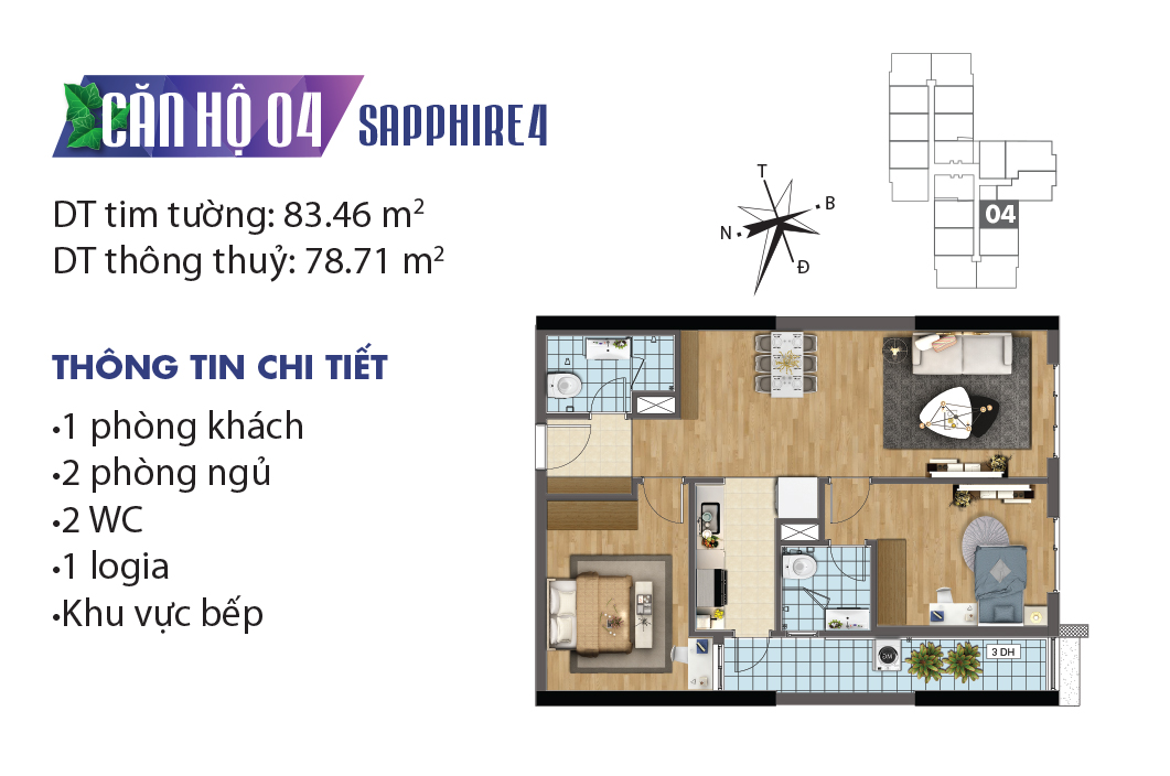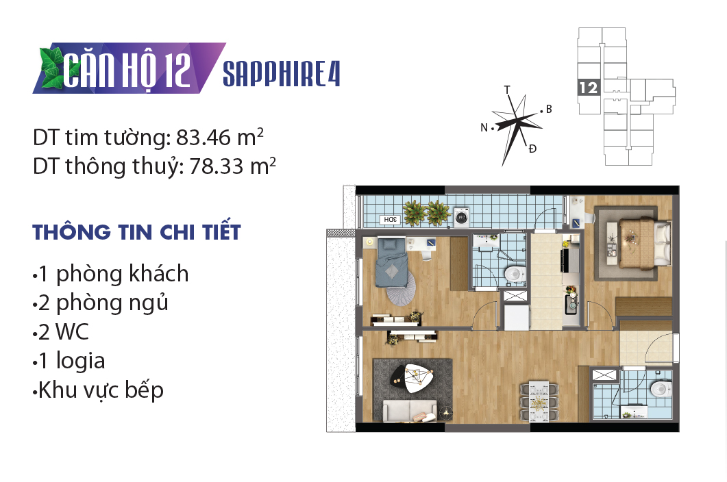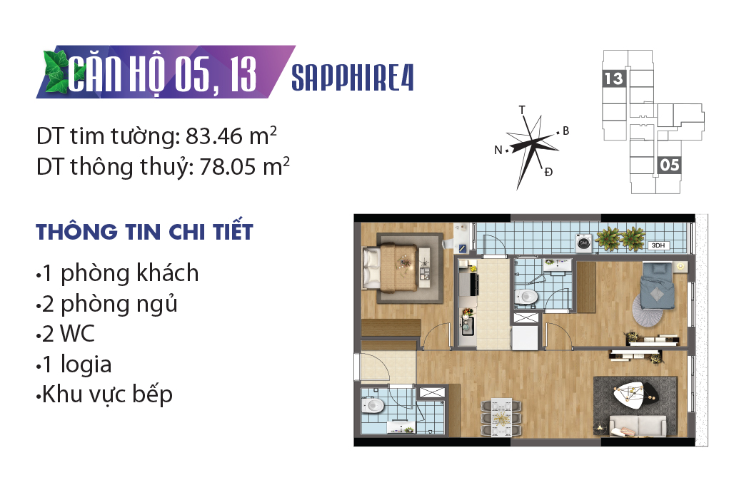 Thiết kế mặt bằng căn hộ tòa Sapphire 4 – Goldmark City